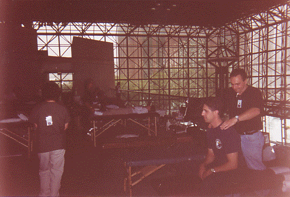 Some of our ground heros!!! Dr. Eric adjusting. And our Flag was still there!!! Adjusting at Jacob Javitz Convention Center.